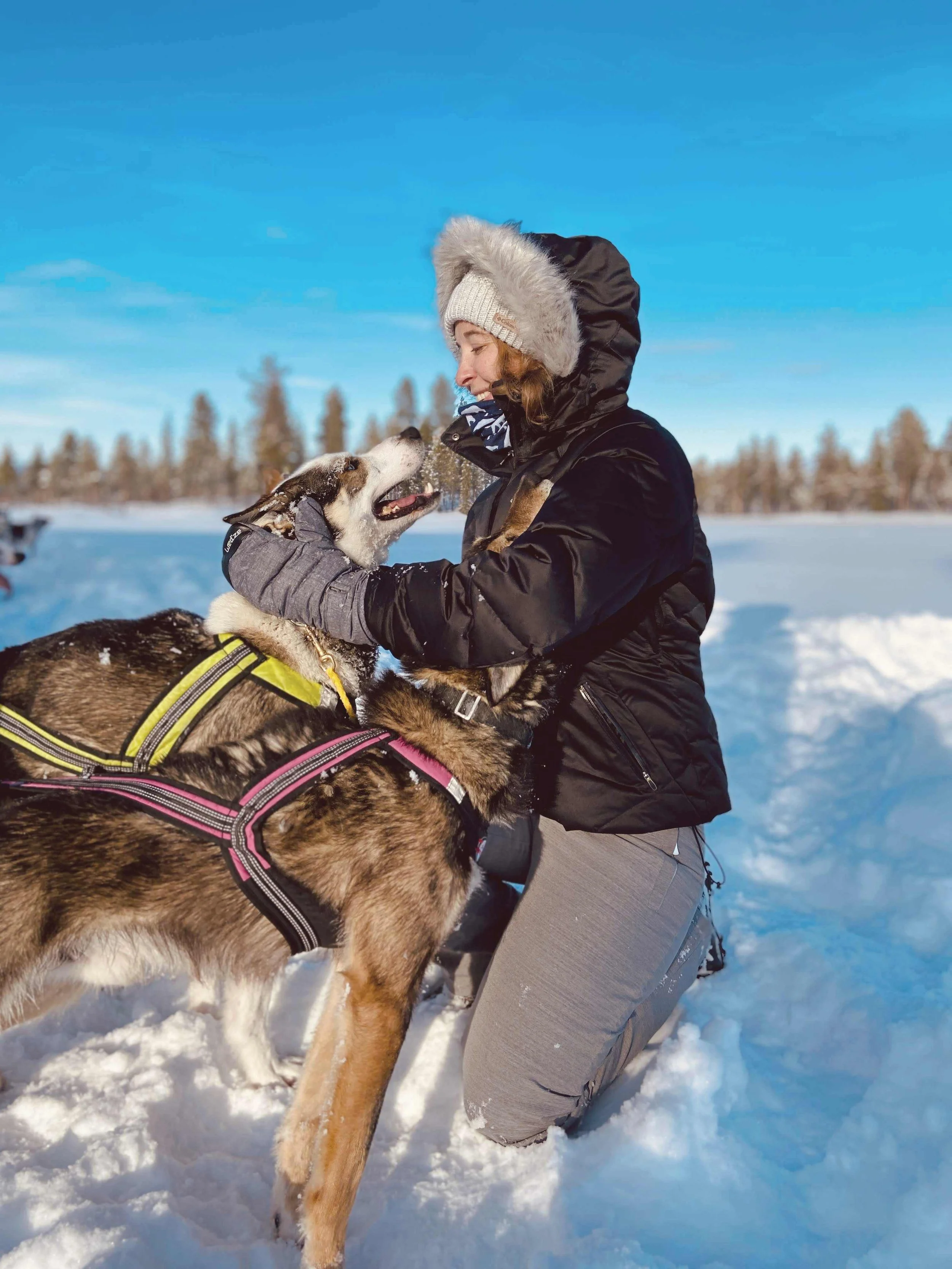 👉 Book a dogsled tour with husky cuddles (when they have puppy, they let you in the puppy enclosure. Awwww)