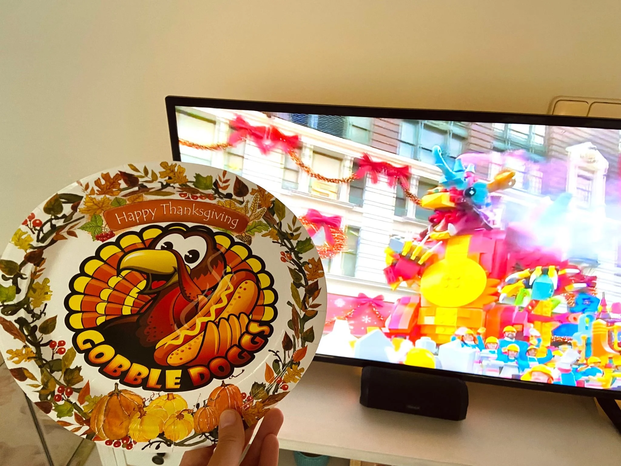 The next morning, I’m up early to keep cooking and get the turkey in the oven ASAP. Since we’re six hours ahead, the Macy’s Thanksgiving Day Parade hasn’t started yet. By the time it kicks off, we’re well underway in the kitchen, but we can still savor a little slice of the US with every Broadway number, giant balloon, and marching band that crosses the screen.
