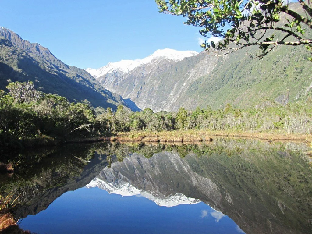 The skies clear just in time to give us picture-perfect views of Aoraki and Mount Tasman, reflected in the mirror-like surface of Lake Matheson. Wow.