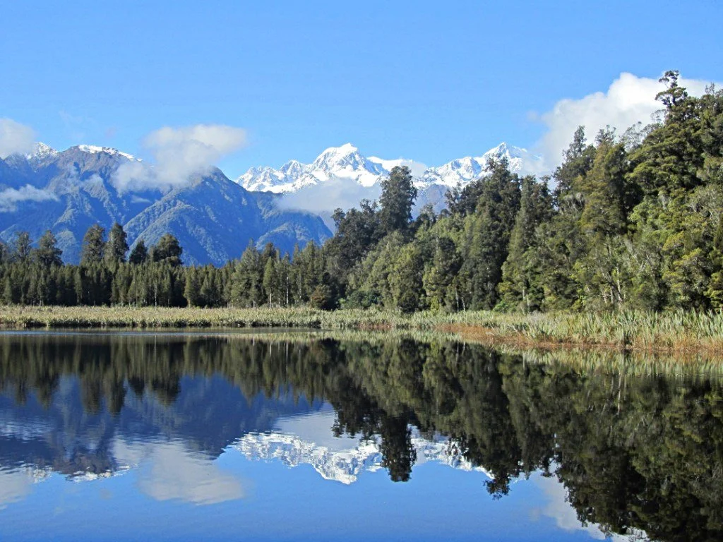 Aoraki and Mount Tasman reflecting in Lake Matheson. What a postcard!